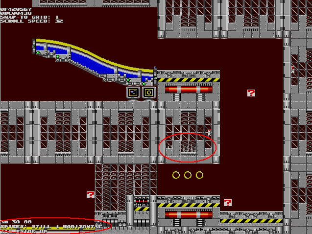 Picture taken with the shitty pos SonED. It turns out that these spikes are not misplaced at all. They are put there in case the moving blocks in the area end up pushing you into the wall. From where you can't escape, so they pasted spikes there to kill you should this happen. This proves, at the very least, that Sonic Team always had sloppy, buggy programming in all of their games. |