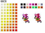 Amy in Chaotix! Kojichao, with her artistic eye, can spot out colors pretty easily. She managed to make this chart for the pallets in Chaotix and Crackers. One of them was an unknown pink palette. When applied to an Amy image, this is the result: