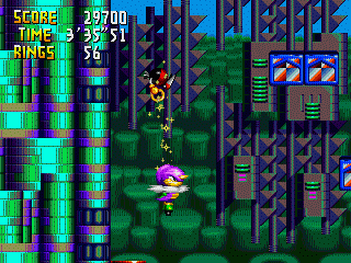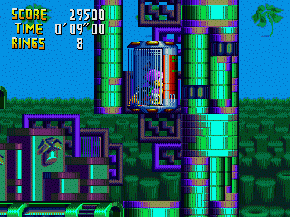This construction doesn't vary much from act to act, rather than change layout, the goal ring simple moves onto a higher up floor, allowing new sections of the tower to be played the higher the act you go. Be prepared to be thrown about by many a spring (hello Sonic Crackers), and be sure to check out any fishy looking Dr. Robotnik walls, they're generally hiding goodies or Special Stage entrances behind. At the top of the Tower, Dr. Robotnik attempts to be rid of you in this circular looking robot, with extending arms, while firing lasers that rebound across the arena thanks to some moving mirrors. Aim for the big red area in the middle of the robot.