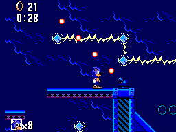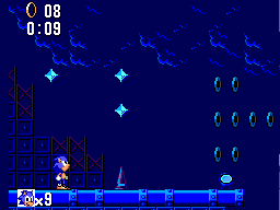 Sky Base, the final level in Sonic 1, is the most difficult of all the levels. Throughout the dark scenery you'll encounter lightning strikes and other oddities that can harm you. Every step you take could easily result in your demise. Death is a simple task here. Be wary.