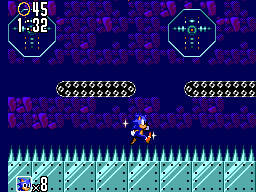 Gimmick Mt. Zone, the fifth level in Sonic 2, takes place in a futuristic industrialized area. This level can prove to be very difficult. Along the way you'll encounter moving platforms, spikes, and circular platforms that defy the laws of gravity.