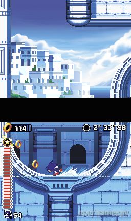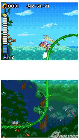 During development of Sonic Rush, changes were made to the game in many ways. Mainly cosmetic. These changes were hugely to do with sound, you can watch early videos of the game with older music on SEGA Europe's website here: http://www.sega-europe.com/...vies___3829.htm From these videos the obvious change here is: ![]() ![]() Proto - Final It's also obvious that in the video, as well as there being a different titles, there's also different music playing through the 1st level. Which is the track "Blaze appear" which is much shorter in the final of Sonic Rush and played when Blaze shows up for that one magical story scene. Proto stills ![]() Sonic Sliding down water slide in Water Palace, Sonic is outside the funnel where as in the final he is over-lapped by the edge of the funnel and there's no water-being-pushed effect around Sonic's feet. ![]() ![]() ![]() ![]() Blaze in assorted areas of levels. Noteibly in the last image here the top of the loop in Leaf Storm is different in the final. And if it really needs pointing out, she has Sonic's life icon, which is not uncommon for Sonic games during development. ![]() You try finishing a boss like this. ![]() HUD is mostly different for the most-part. Text over-laps each other a buit, see the HUD. The HUD also uses a different front to that used in the final game. ![]() ![]() ![]() HUD difference ![]() Old HUD and in an unknown area of Mirage Road. |
