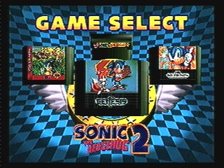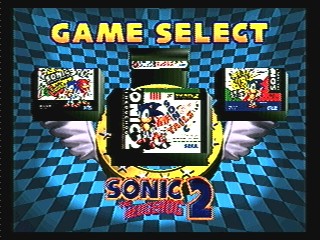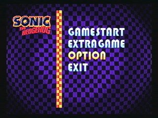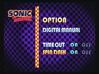 For each game, there is a menu... Gamestart gives Normal, Easy, Original, and Saved Game ("Easy" and "Normal" have numerous changes throughout each level in EVERY game, I'm not documenting them, BUT it does make for interesting gameplay once you've mapped out EVERYTHING in the Original mode in your head). Extra Game gives a Time Attack mode for each act and level, and then you can also do Special Stage trails. The Option menu brings up two things, Digital Manual (in which you can read either the US or the Japanese manual for whichever game you've selected) and then Time Out (which lets you set it so that if you go over the 9 minute 59 second time limit, it doesn't kill you. What these two pics are demonstrating are the THIRD option that is only given on Sonic 1... the option of having a Spin Dash or not... with it enabled, there are also some other odd changes... |