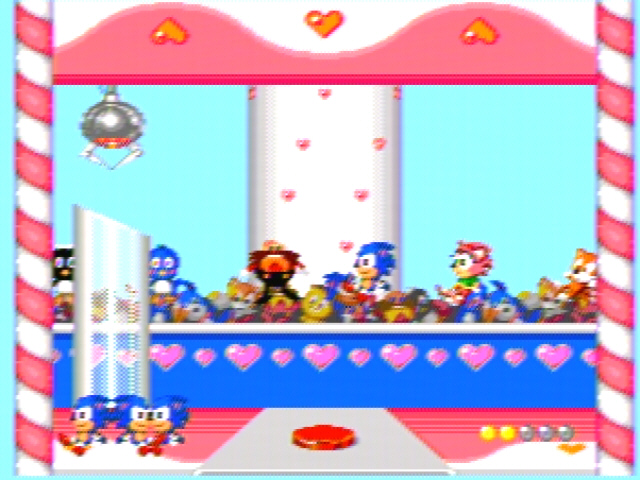 Description: Remember those candy cranse from many a year ago? Well, Sonic Gameworld's got one. Pick up a Sonic, Tails, Amy, or Flicky doll to get points, but beware of the Robotnik doll. Pick it up and you get nothing. You get 5 tries to grab dolls.