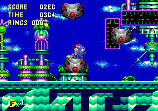 When Nemesis did his Sonic CD 410 prototype hack/hoax, the following object was discovered in the 510 prototype. It's the classic sonic "3 spinning object" type thing. But it reacts strangely. When sonic jumps into one of them, he sticks in mid air, the object flashes, then he "pops out" of another one. Most likely what was supposed to happen was Sonic sitting inside it while it was moving, then popping out another one. ![]() These are the teleporters ![]() Sonic jumps into one..... ![]() Remains in the same spot.... ![]() Then pops out of another. Pretty useless object. |