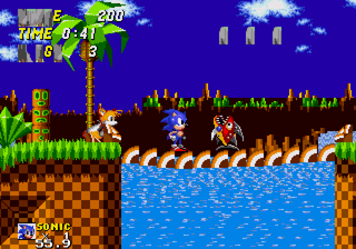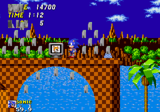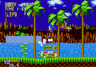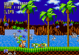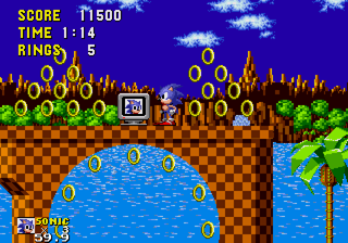 ![]() Entering Green Hill Zone via the level select takes you to just that, Green Hill Zone. But this is Sonic 2 isn't it? Of course, but don't forget that Sonic 2 was in fact built off of Sonic 1 in the same fashion that Sonic 3 was built off of Sonic 2 (See: Sonic 2 menus in Sonic 3 and Sonic 3 level select pictures.) This version of Green Hill was more than likely present in early alpha builds of Sonic 2 to test collision and the engine. In this version we see that they pretty much abandoned it as all the collision is completely fucked up. ![]() It's very probable that once they started building Sonic 2 zones like Emerald Hill, they stopped working with GHZ. This is more than likely the last major build to ever use GHZ before it was pretty much removed. ![]() Pretty much anything that isn't level art is messed up and garbled. The only exception seems to be the Piranha badniks, who just seem to have a screwed up pallete. Another thing to help date this zone. The monitors use their old Sonic 1 mappings. This is due to the fact that they changed some monitor mappings around due to some additions, like the Tails 1-Up mapping. Observe