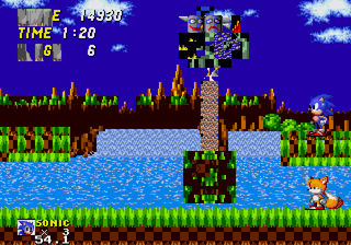 ![]() Much of GHZ is pretty intact, including the final boss (sort of) ![]() Defeating the garbled crapbotnik brings you to the garbled egg capsule. Jump on top.. ![]() ...and the flickies and rabbits are freed, and it's off to Chemical Plant (Marble Zone in the game) |