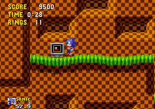 Rings and Shield monitors have switched places between the two games. Invincibility has been replaced by speed shoes.