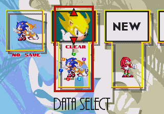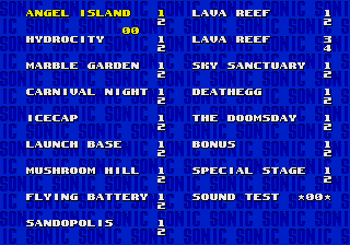 ![]() Title screen says Sonic 3 (duh) ![]() Data Select uses old Sonic 3 format. This slot says clear, but I'm only up to Mushroom Hill ![]() Level Select is from S3K, however the following levels are unavailable: Lava Reef 3 and 4, The Doomsday 1 and 2, Bonus 1 and 2, and Special Stage 1 and 2. All of these can be accessed with the debug code: Play 01, 03, 05, 07 and debug is now active. |