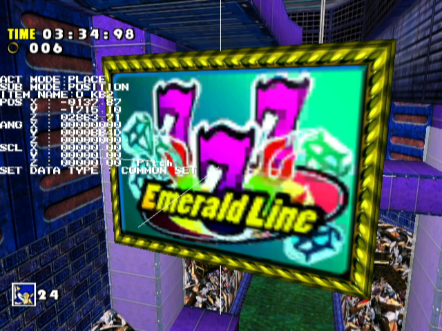 ![]() There are used versions of these images that can be seen near the slot machines that you homing attack, but they use entirely different art (One is a Sonic pinball art, the other is NiGHTS art). Possibly unused pinball table ideas? |