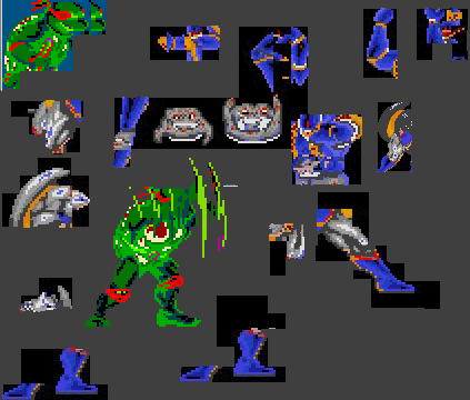 ![]() This image is from the 2mb dump of the Sonic Crackers ROM. There are 2 current dumps: The 1mb version, and the 2mb overdump. The 2 mb overdump had a chip(s) attached to it when it was dumped. This extra data contains half of a prototype ninja turtle game. Which game it is currently hasn't been discovered. |