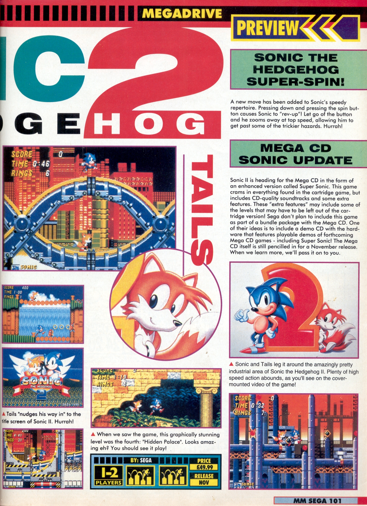 Sega Power Nov 1992 Sonic 2 preview pg 1
