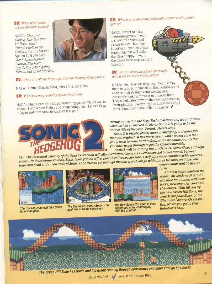 Sega Visions Sep 1992 Yuji Naka Interview #2