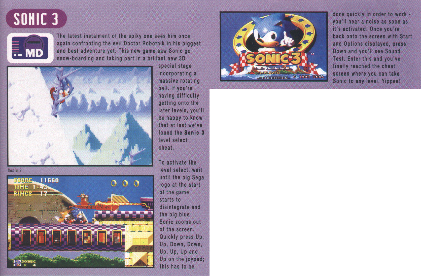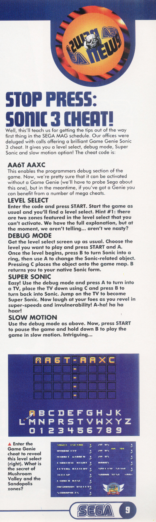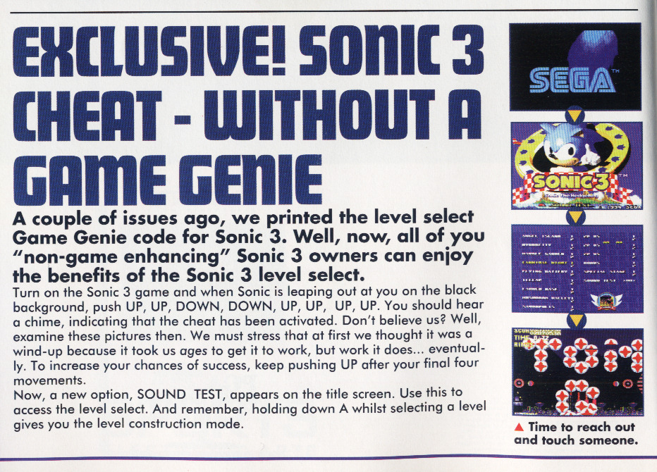 Sonic 3 cheats, page 1