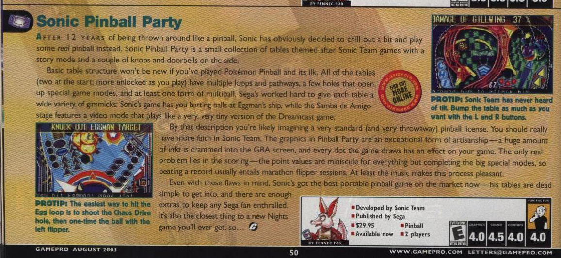 // Sonic - Post 16 bit // Sonic Pinball Party