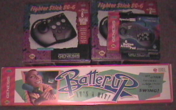 2 boxed ascii power sticks, a 6 button pad, batter up controller