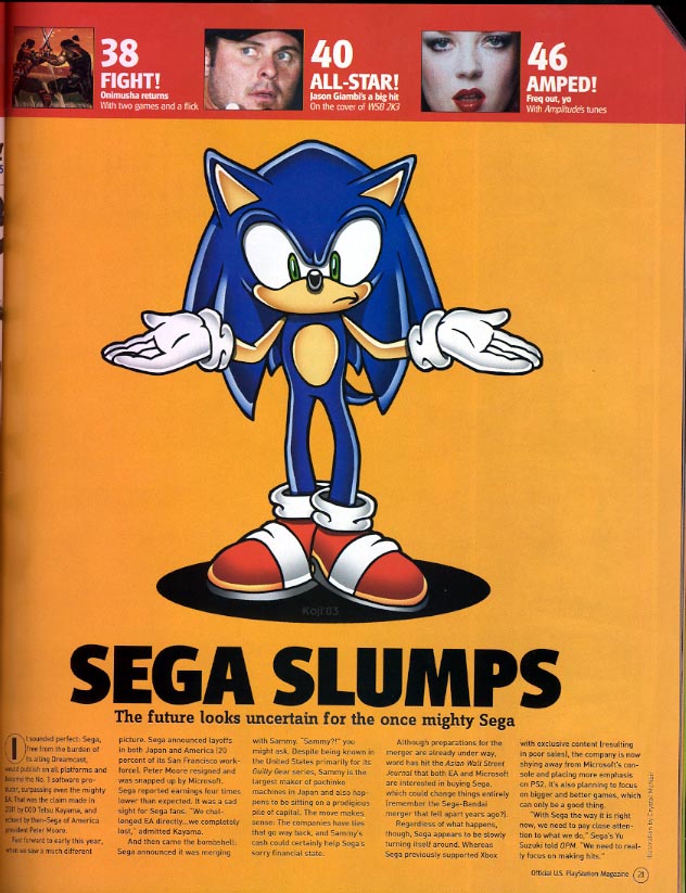 Our very own artist, Kojichao, was hired to do an image for this Sega article because the editor of Official Playstation Magazine thought her work was outstanding.